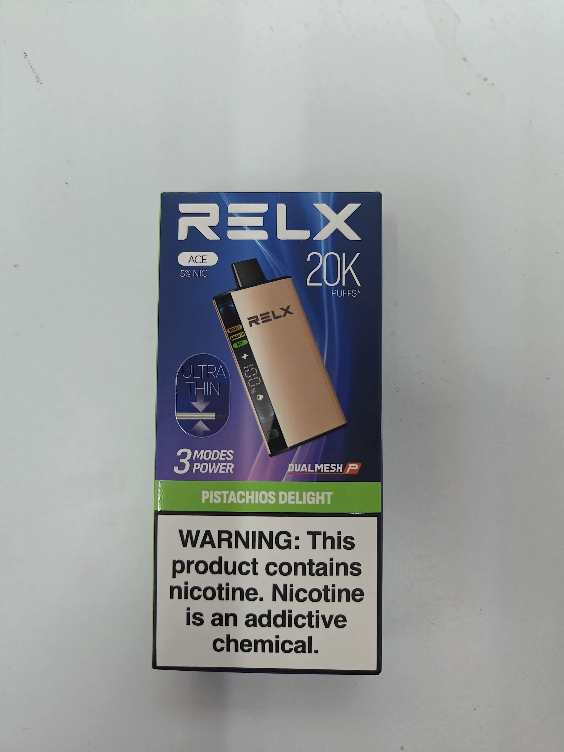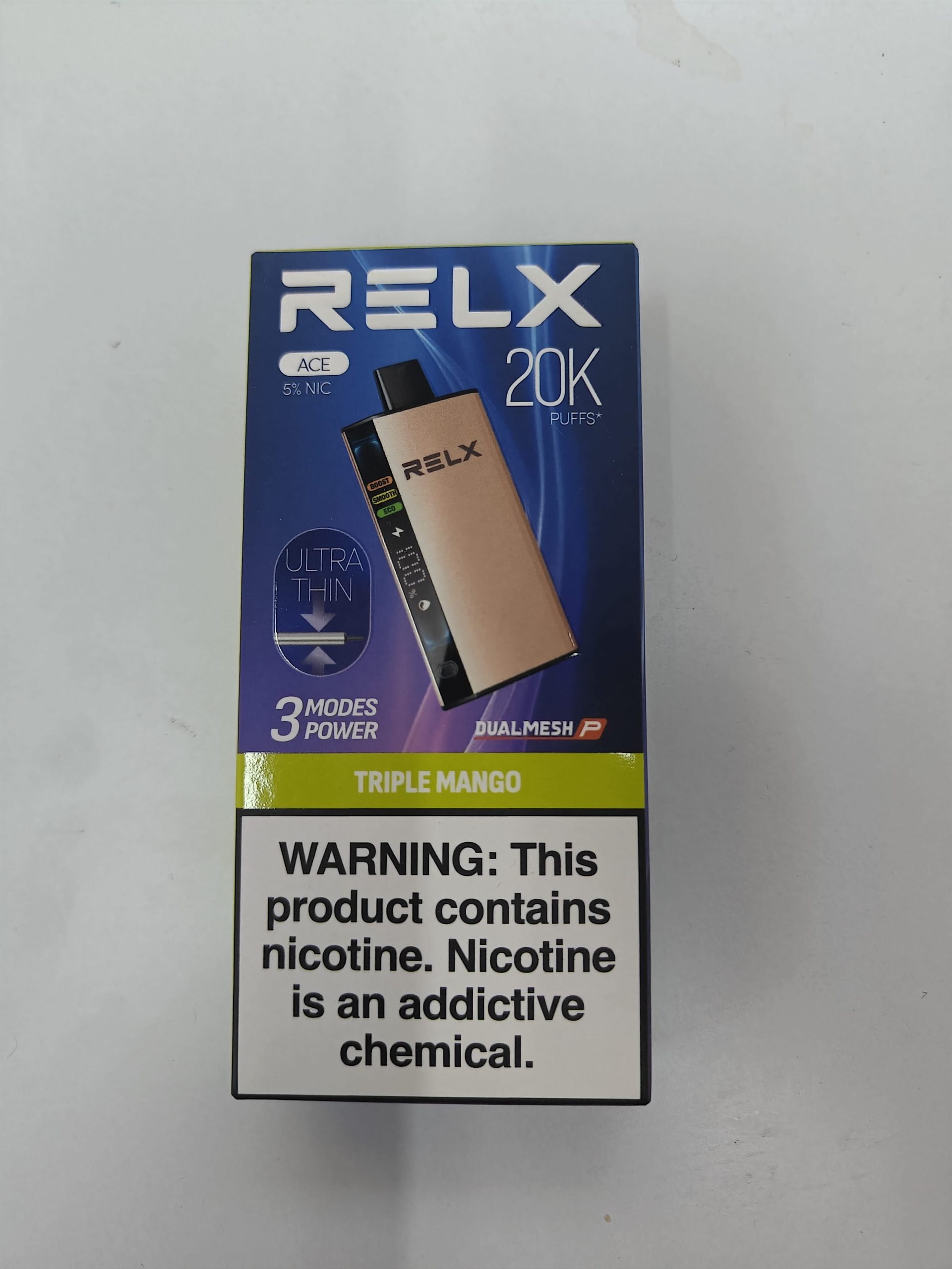 Relx Ace 20000 5% hits strong and smooth, lasts a long time and tastes great
