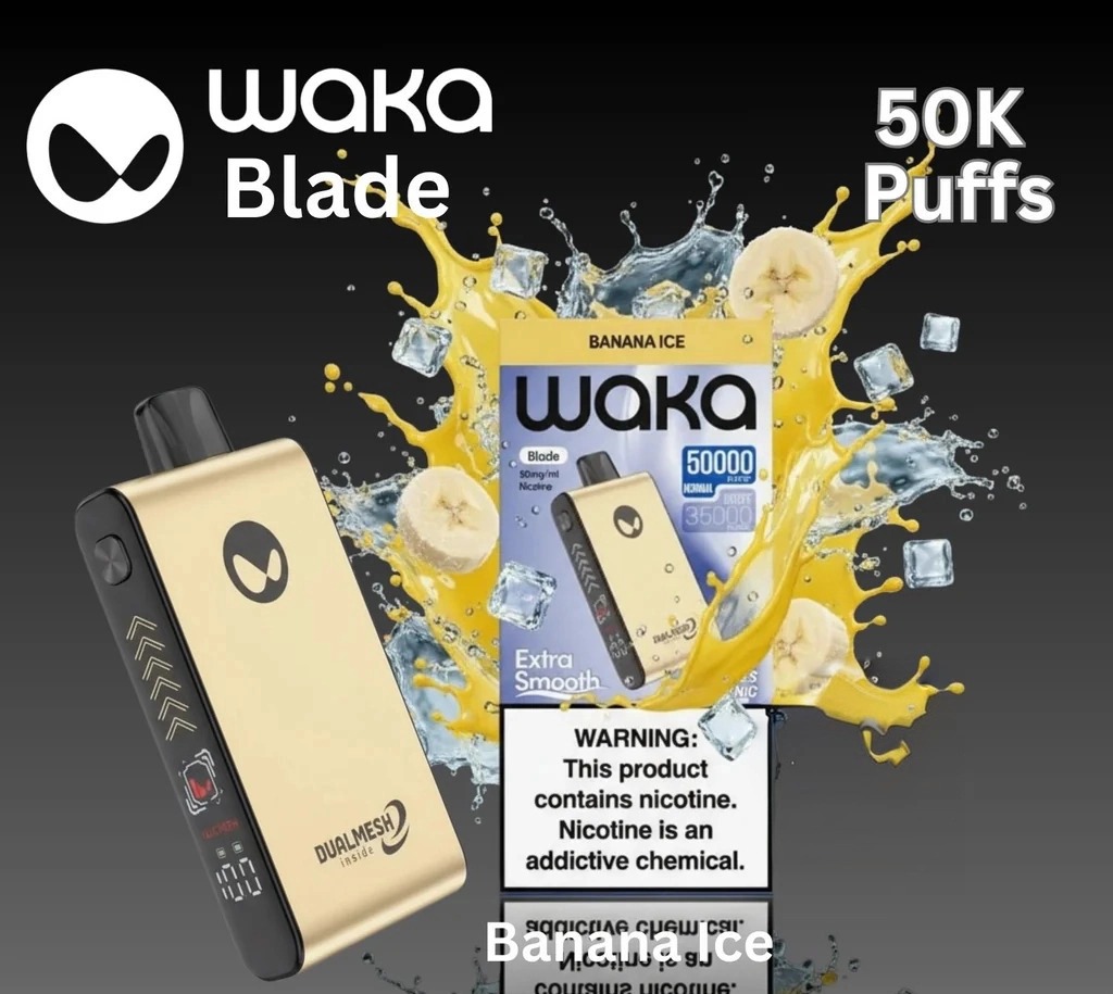 The Waka Blade 50000 Puffs Disposable Vape offers an unmatched 50,000 puffs, smooth MTL inhalation, and strong 5% nicotine. With 33ml e-liquid, a 900mAh rechargeable battery, and Type-C charging, it delivers long-lasting flavour and robust nicotine satisfaction. Available in a wide range of premium flavours including Banana Ice, Mango Peach Watermelon, Strawberry Watermelon, and more.